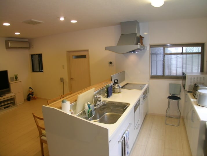 水廻りのリフォーム事例各リフォームの事例は下記のボタンをクリックしてください。水廻りリフォーム 外構リフォーム 屋根リフォーム 間取り変更リフォーム マンションリフォーム 熟年世代リフォーム 改築リフォーム 水廻りリフォームキッチン取り換え工事 K様邸/川西市施工前施工後昭和58年に当社で新築させていただいたお宅です。当時としては最新式のキッチンでしたが経年の劣化の為、シンク廻りが腐ってきました。ガス代が壊れたのを機にリフォームを決意されました。対面式で解放感溢れるキッチンになりました。大容量のおしゃれな収納を実現しました。浴室・洗面所リフォーム S様邸/川西市施工中施工後 当社が数十年前に建築に携わった邸宅のリフォームです。 浴室と洗面所が老朽化したので新しくしました。 昔ながらの土間を取り払い、部屋にすることで動線がスムーズになりました。 施工前施工後広く明るいキッチンリフォーム S様邸/川西市施工前施工後手狭で暗いキッチンを「広く・明るく」というテーマに沿って間仕切り壁3枚を取り去る事を中心にリフォームしました。 施工前施工後キッチンとリビングルームのリフォーム工事施工前施工後古い立派な農家の構えのお宅です。成人された3人のお子様との生活に、より便利で明るい内装を希望されました。 施工前施工後