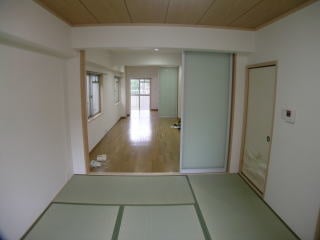 マンションのリフォーム事例各リフォームの事例は下記のボタンをクリックしてください。水廻りリフォーム 外構リフォーム 屋根リフォーム 間取り変更リフォーム マンションリフォーム 熟年世代リフォーム 改築リフォーム マンションリフォームマンションのスケルトンリフォーム O様邸/宝塚市施工前施工後家族の人数に合わせて、間取りを変更しました。施主様が細部に至るまで明確なプランをお持ちでしたので、建築のプロとして実現できるようにお手伝いしました。施工前施工後マンションリフォームO様邸/豊中市施工前施工後リビングのクローゼットです。明るい引き戸にして、中に箪笥を収納します。施主様の使い勝手にお応えして収納棚を作りました。施工前施工後マンションリフォームT様邸/大阪市施工前施工後大阪市内のマンション一室全面リフォームです。 スケルトンにして間取りを変更しています。 健康な高齢者の一人住まいでしたが、この先の生活を見据えて室内をバリアフリー化し車椅子にでも使いやすい室内にしました。壁を取り払い南北に風が通ります。 施工前施工後