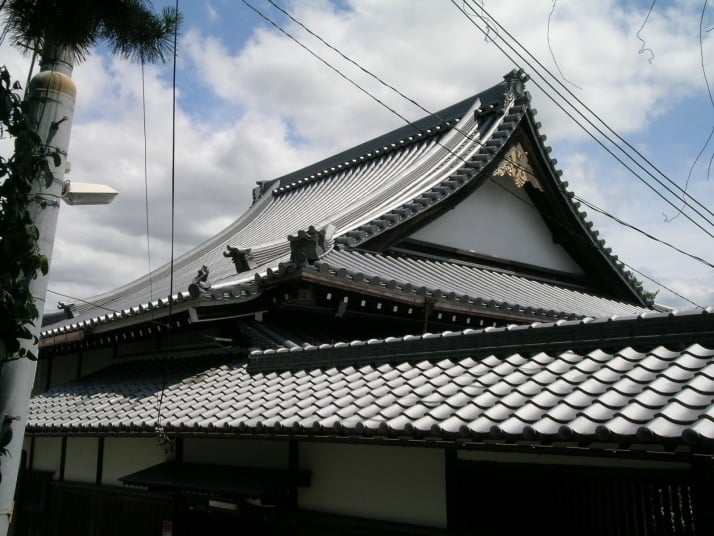 吹田市 S寺お寺の本堂の屋根の葺き替え工事 施工前施工後施工前施工後昭和初期建立のお寺の瓦の葺き替え工事です。本葺瓦になって更に立派になりました。桟葺きの為重量は軽量化されました。裏側の屋根は阪神大震災以来一部トタン葺きのままで雨漏りしていました。懸魚(げぎょ)も新調しました。